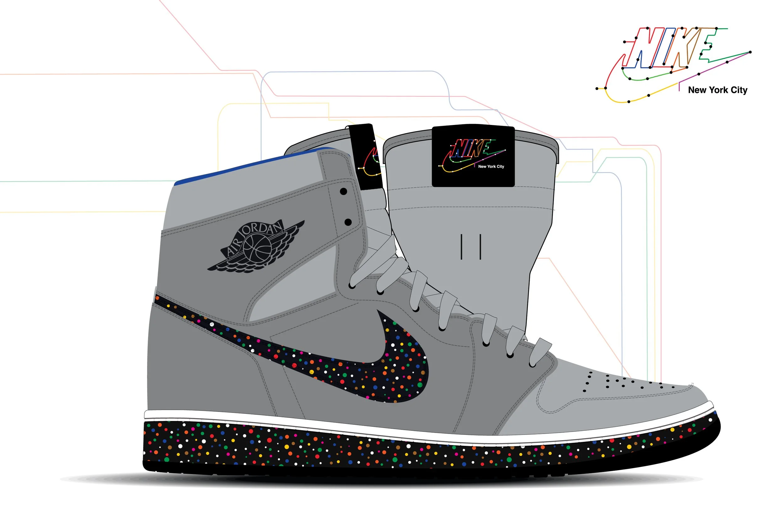 During the course of six weeks, more than 130 high school students from nationwide Jordan Brand Wings partner organizations worked closely with members of the Jordan Brand product-creation team to design an Air Jordan I centered on the theme of “role models.” These students, from cities including Los Angeles; Chicago; Charlotte, N.C.; Philadelphia and more, were encouraged to weave personal narratives into their designs, creatively honoring the local figures who support their dreams. Students from each city pitched their final designs to a broad panel of Jordan Brand employees, who selected one final design to go into production: New York City’s Air Jordan I Mid Subway.